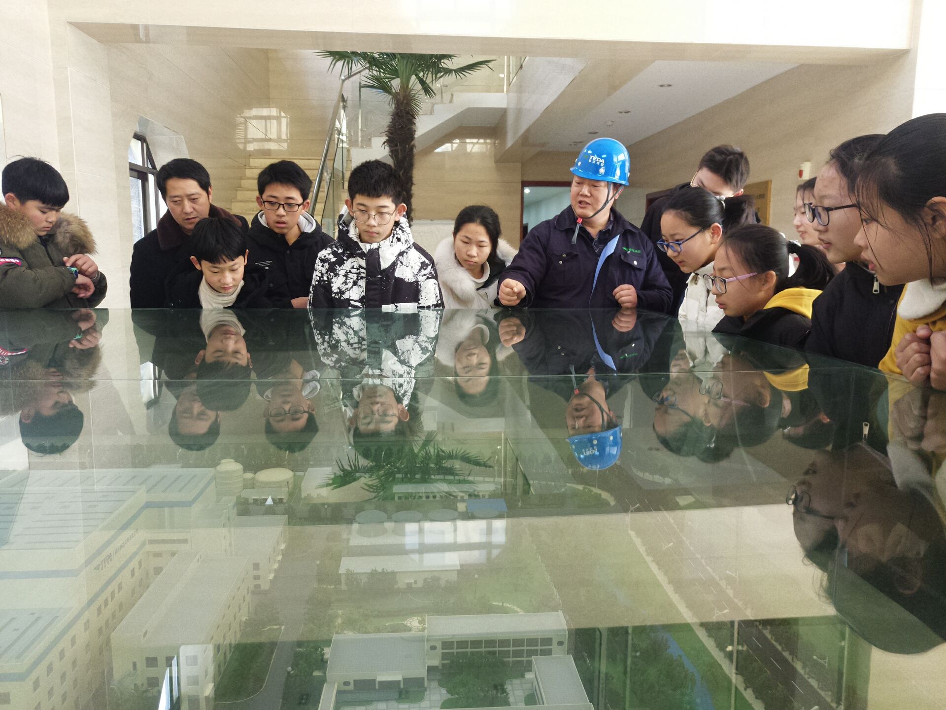 从南门进入大楼一楼,我们可以看到项目的整体布局模型。同学们围在模型四周,听着专业人员的介绍,踊跃的提出疑问。