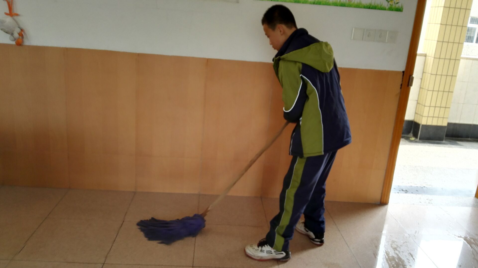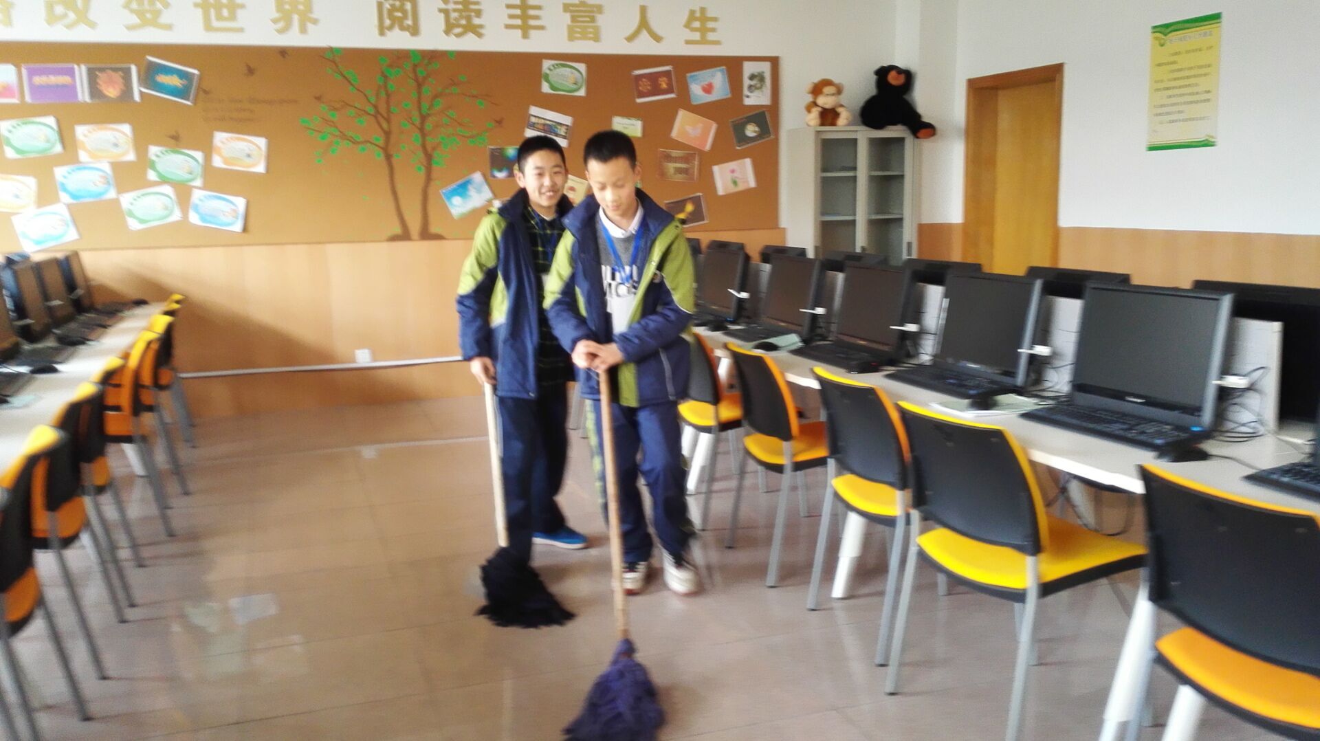 打扫阅览室,在我和小唐看来就是一个既普通又简单的工作,却让我们俩可费了不少力。从最主要的扫地拖地到擦桌椅和书柜,从最开始的活力四射到最后的筋疲力尽。终于我们的认真有了回报:从一进来的脏乱到一尘不染。短短的两节课时间,我们过的很充实,也收获了很多:虽然累,却是快乐的,幸福的。这次活动让我感受到“劳动永远是人类生活的基础,是创造人类文化幸福的基础。”