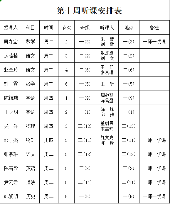 第十周听课安排表