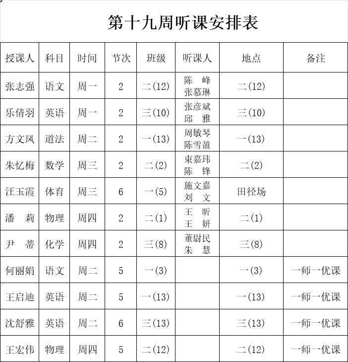 第十九周听课安排表